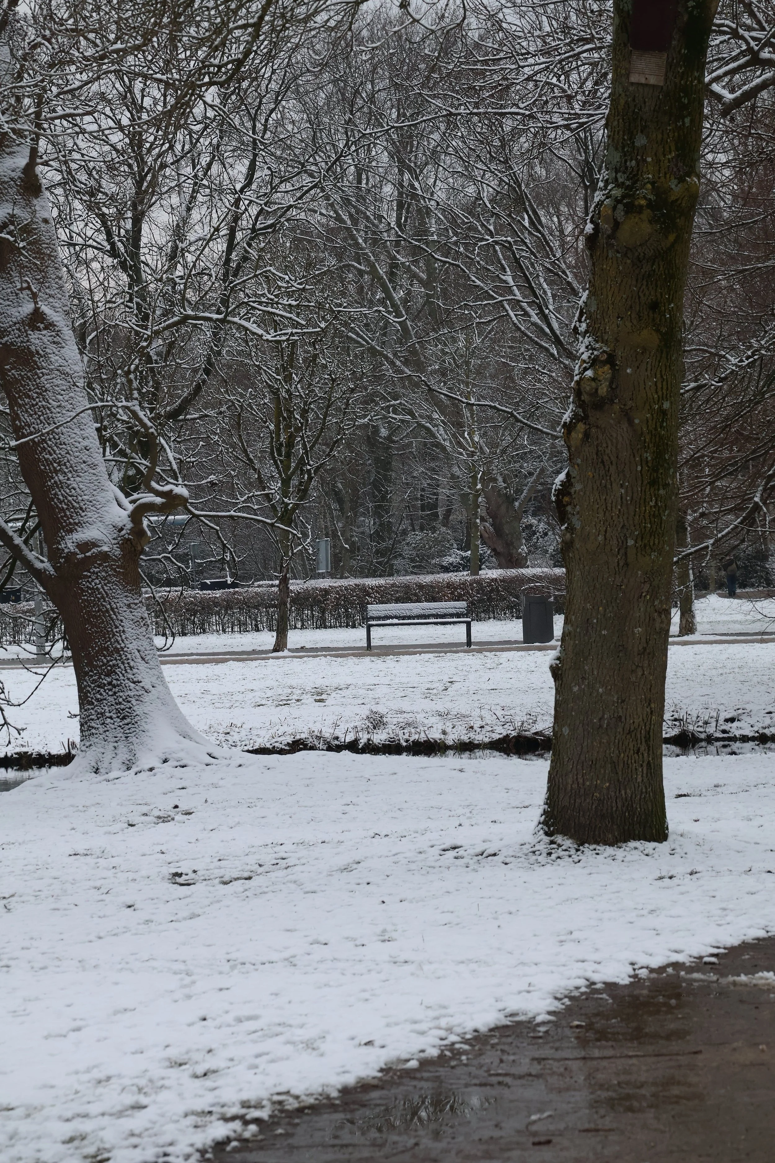 It was placed here for company. For the pause between walks, for the conversation that needed sitting down, for the person who simply wanted to watch the park breathe. Snow arrived and cancelled all appointments. The bench remains, patient and purposeless, waiting for a season that has not yet decided to return.